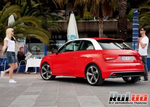Если смотреть на Audi A1 сбоку, наиболее сильное впечатление производят прямые, слегка направленные вверх линии, которые визуально удлиняют автомобиль. Еще одна отличительная черта этого автомобиля – спортивная арка крыши, которая представлена в качестве опции в четырех различных цветовых исполнениях. Арка плавно переходит в заднюю стойку кузова, более плоскую по сравнению с купе, что подчеркивает динамичный внешний вид автомобиля. Спойлер на крыше также придает автомобилю больше динамичности.