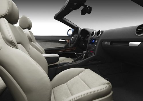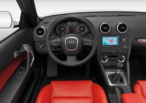 Салон Ауди А3 Кабриолет буквально излучает спортивную элегантность; использованные в нем материалы, привычное высочайшее качество производства и яркий дизайн подчеркивают статус кабриолета. Спокойные линии окантовывают его широкие поверхности. Четыре круглых вентиляционных отверстия и боковые подушки для колен на опорах центрального пульта напоминают интерьер автомобиля Audi ТТ.