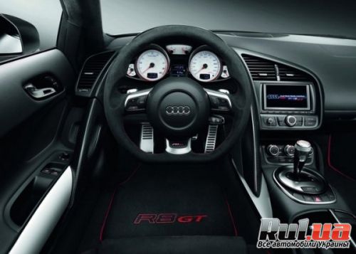 Audi R8 GT (Ауди R8 GT) эксклюзивный автомобиль с ограниченной серией - 333 экземпляра. Каждый автомобиль Audi R8 GT снабжен номерной табличкой на рычаге переключения передач.